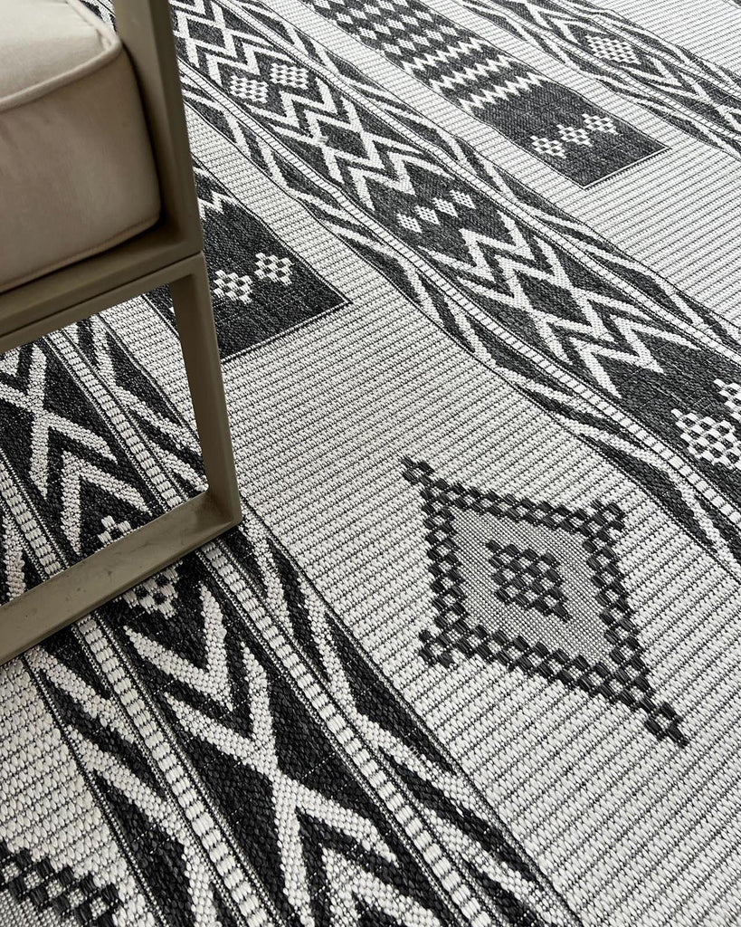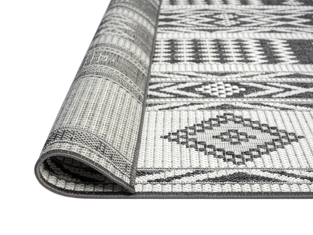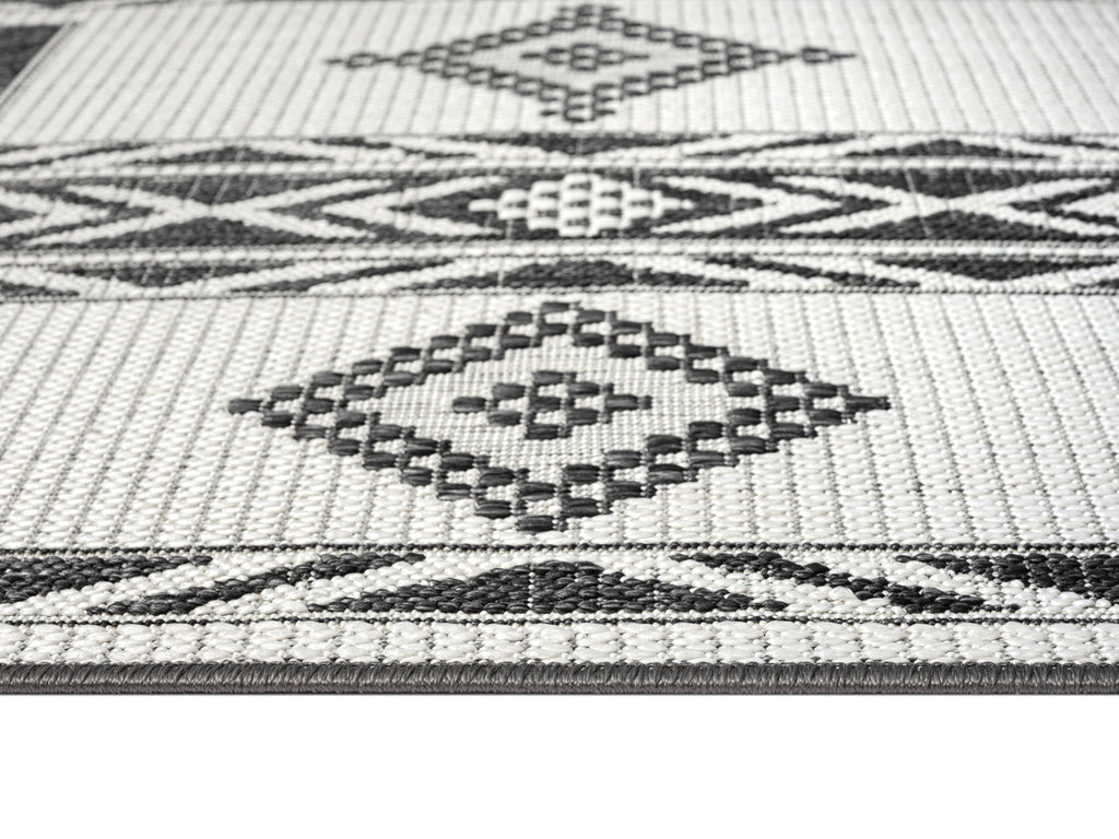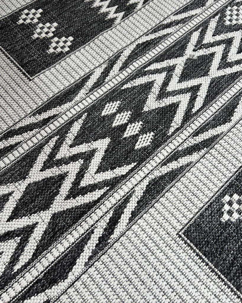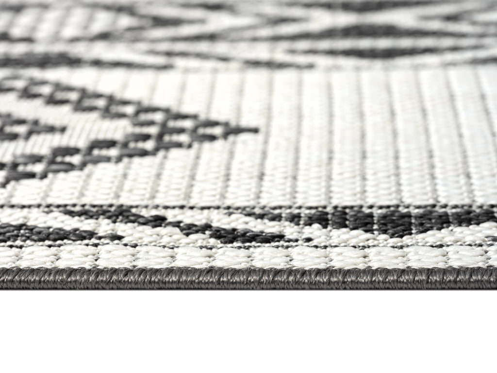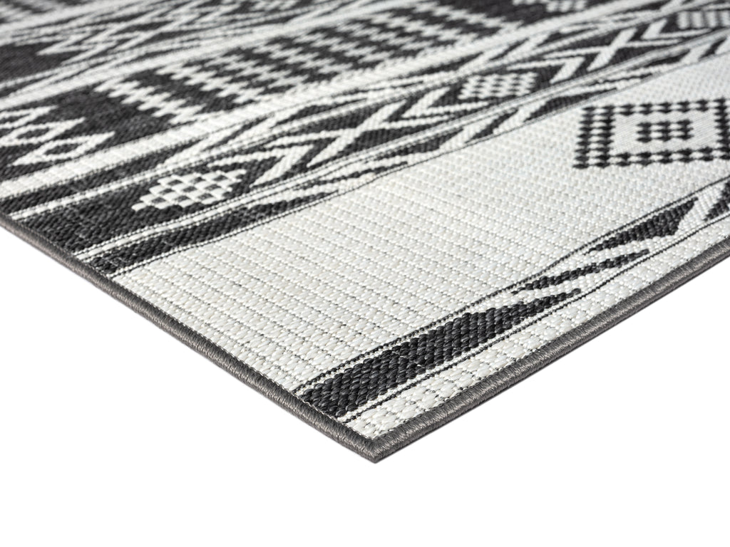 Chenoa Charcoal and Ivory Tribal Flatweave Indoor Outdoor Rug