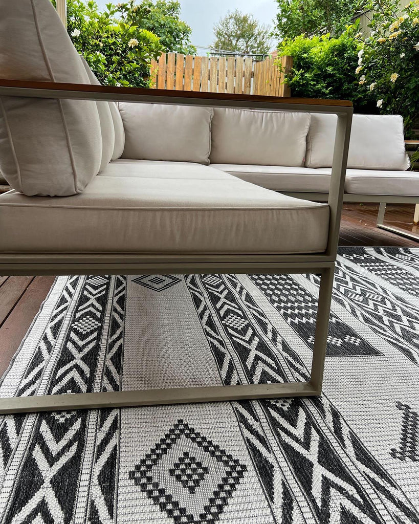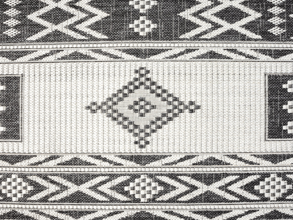 Teyona Charcoal and Ivory Tribal Flatweave Indoor Outdoor Rug