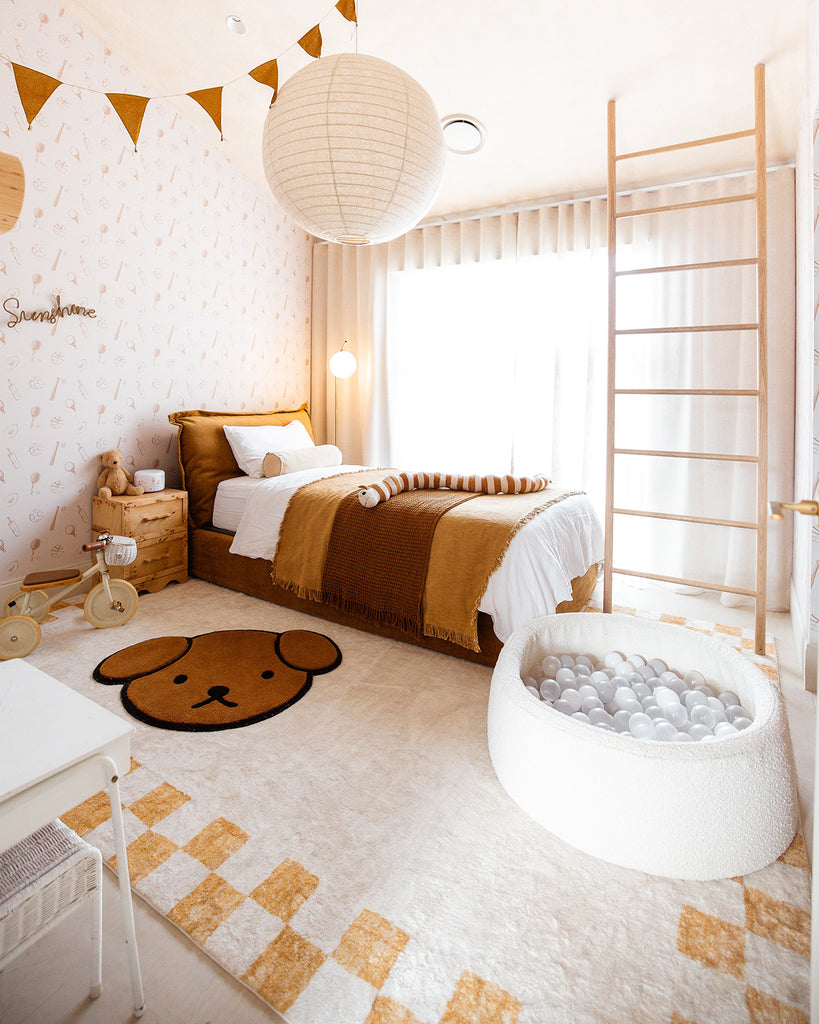 Gadise Yellow Mustard Checkered Border Washable Rug