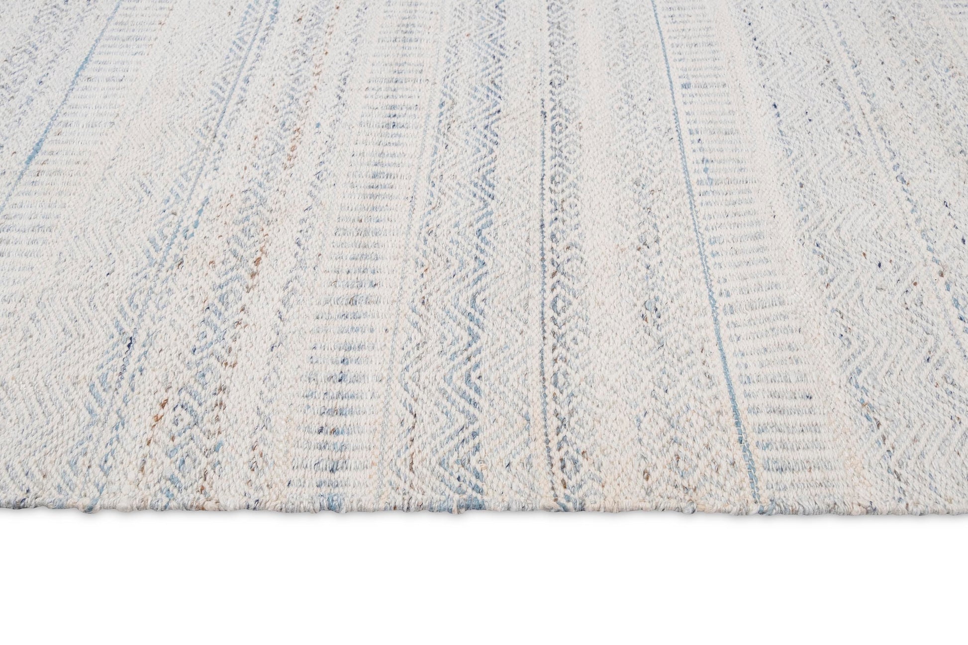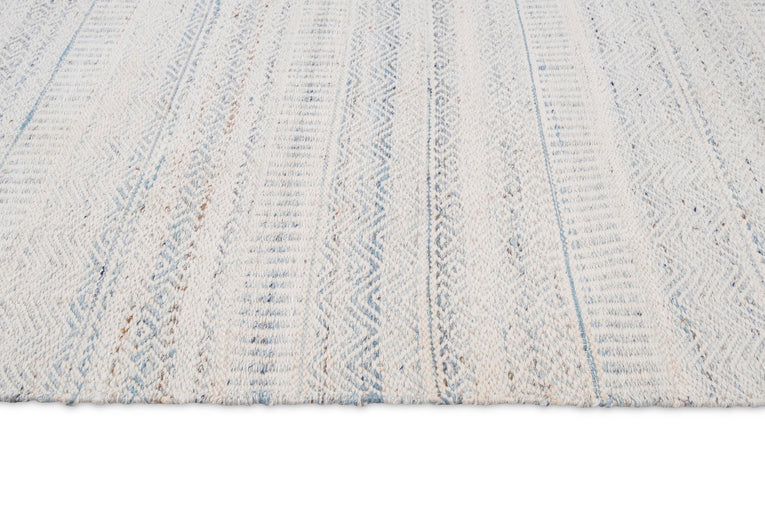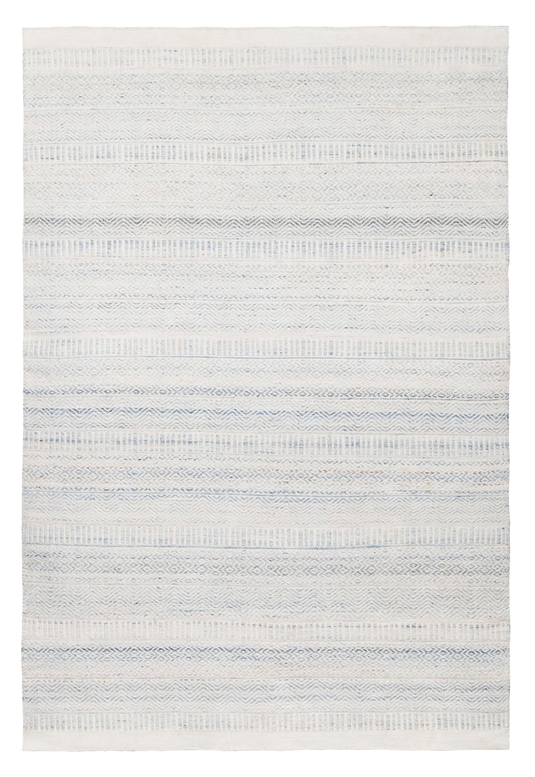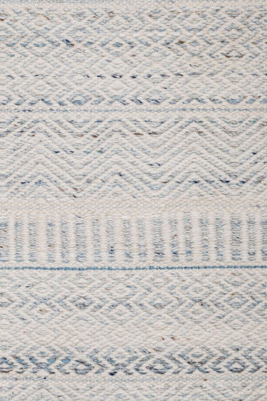 Daisy is a stunning cream and blue PET rug with a lined tribal diamond pattern.
