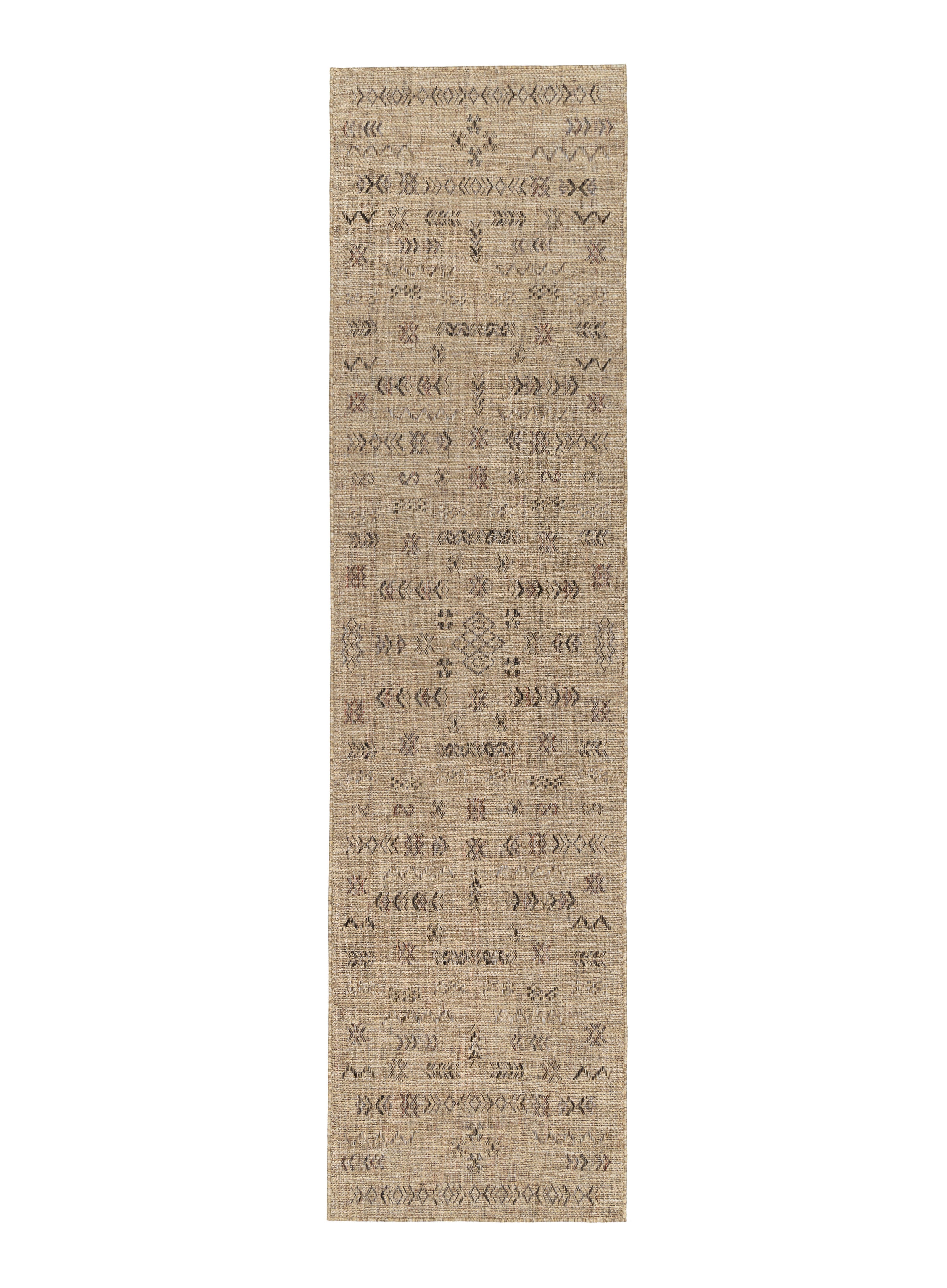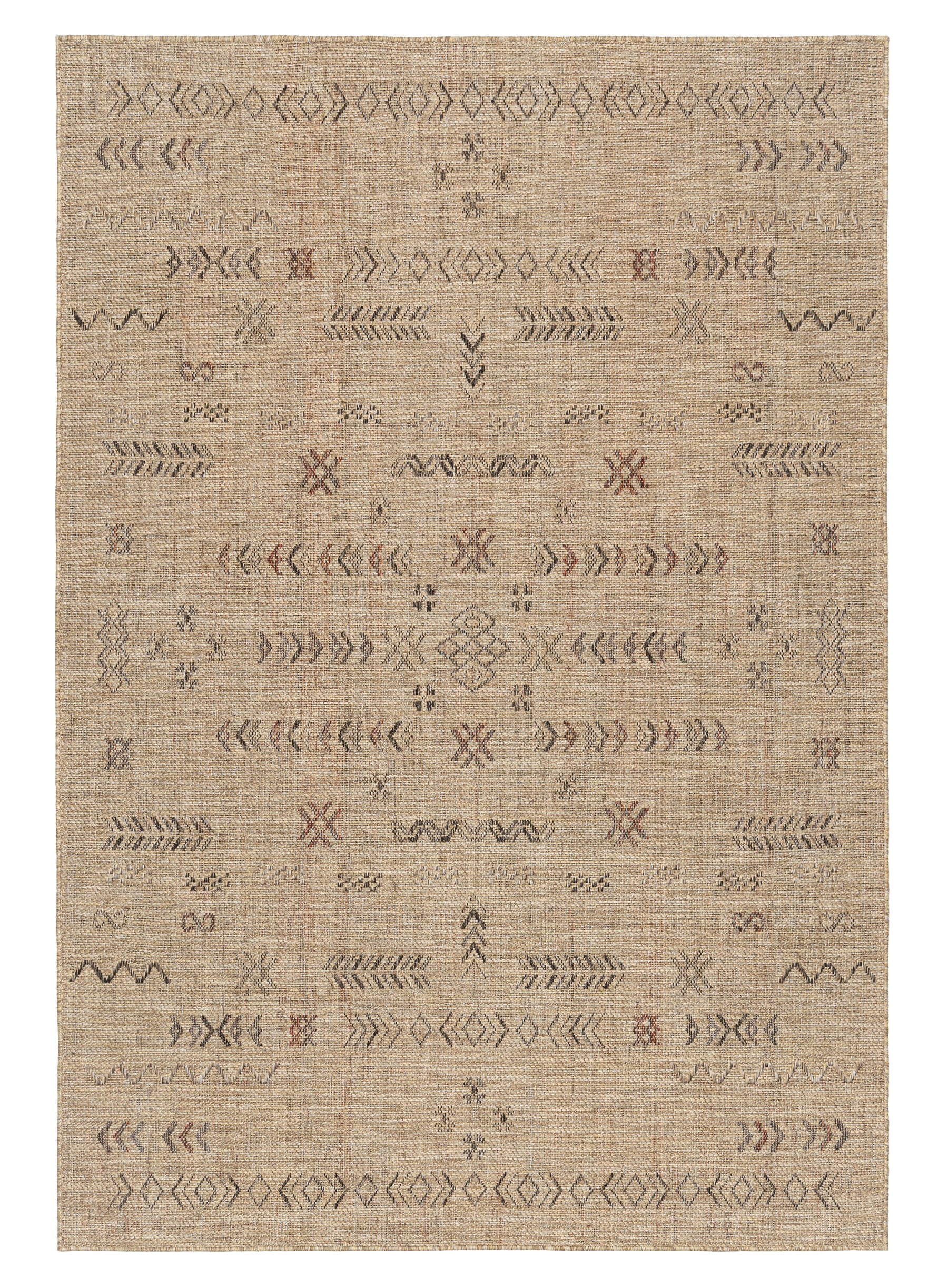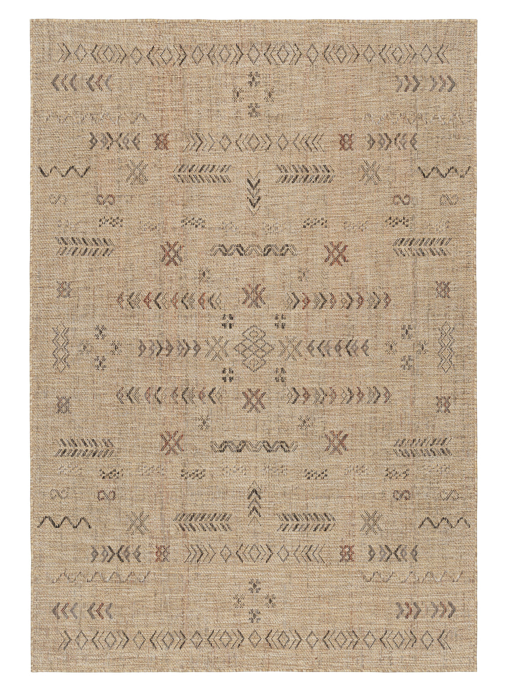 Loom is a warm sand beige indoor outdoor rug, accented with stone tribal-inspired motifs that flow across its surface. Crafted from 100% polypropylene, it’s built to withstand high-traffic areas while bringing a touch of texture and interest to your space.