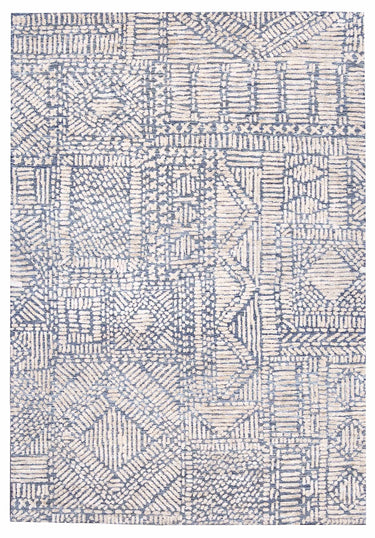 Karmen Blue and Ivory Geometric Patterned Rug
