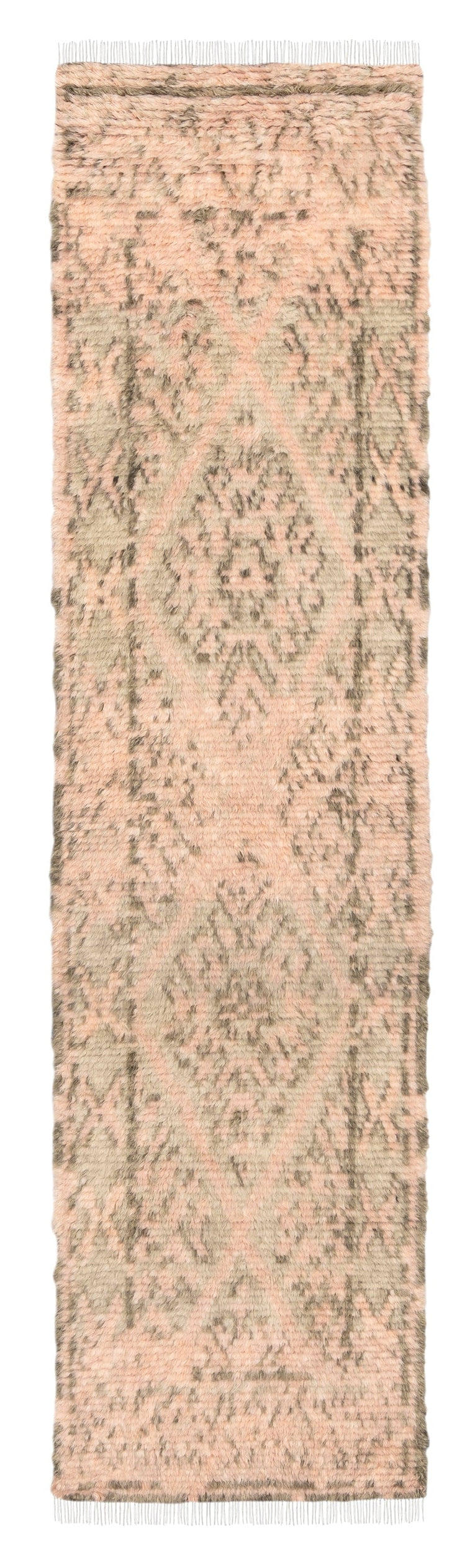 Monika Peach and Green Abstract Diamond Wool Runner Rug