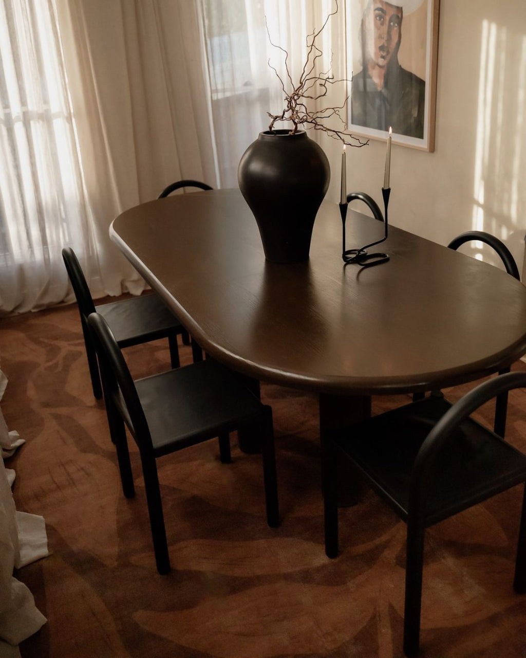 Rhea is a smooth, machine-washable, and foldable flatweave rug in deep chocolate brown tones with an abstract botanical design. A versatile and timeless addition to any space.