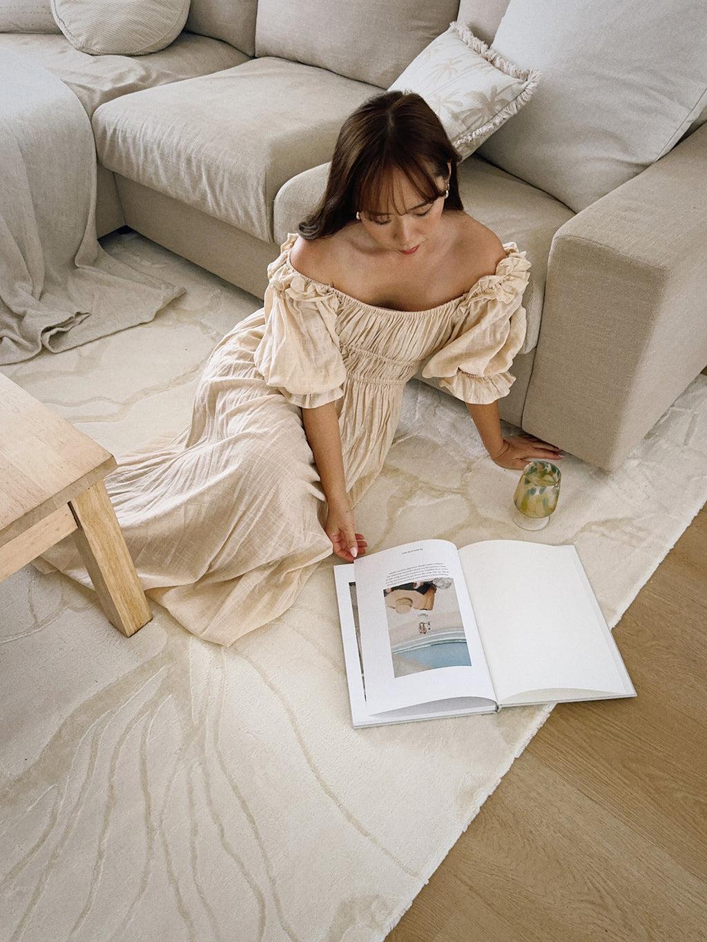Safiya is a luxe foldable rug featuring a textured abstract design with a hint of sheen. A timeless, modern, and unique design to add to any space.
